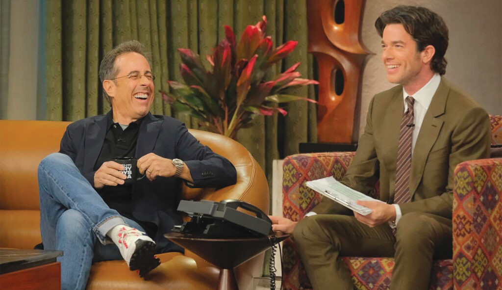 It’s good, or at least good enough. But the steam engine almost immediately starts to sputter. There’s an awkward sit-down with the R&B singer Ray J, who seems unprepared and, in an off-key, earnest moment, discloses that he’s having relationship problems with his wife. Assisted by a doughty but underwhelming Jerry Seinfeld, Mulaney interviews an expert on coyotes from a wildlife nonprofit group and takes phone calls from Angelenos about their coyote experiences. The phone-ins are, at least, winningly odd.