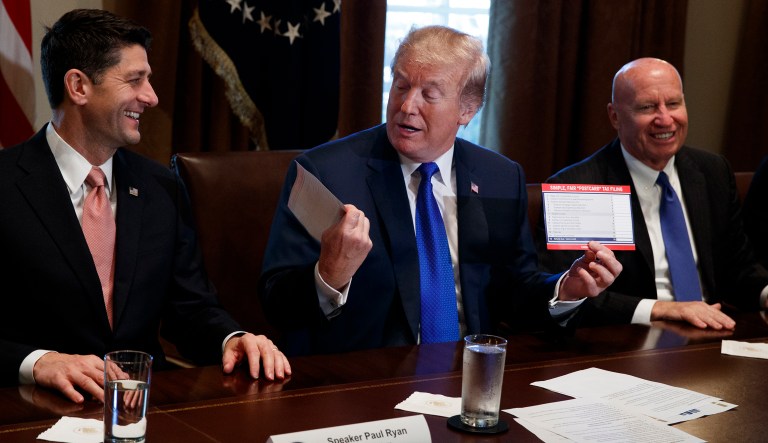 Watch: Trump kisses tax return postcard after Republicans unveil new tax reform plan