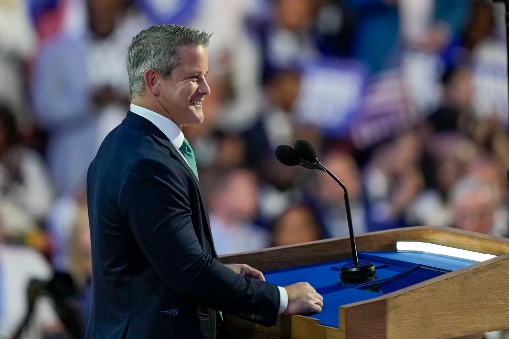 Former Rep. Adam Kinzinger speaks during the Democratic National Convention Thursday, Aug. 22, 2024, in Chicago. (AP Photo/Matt Rourke)