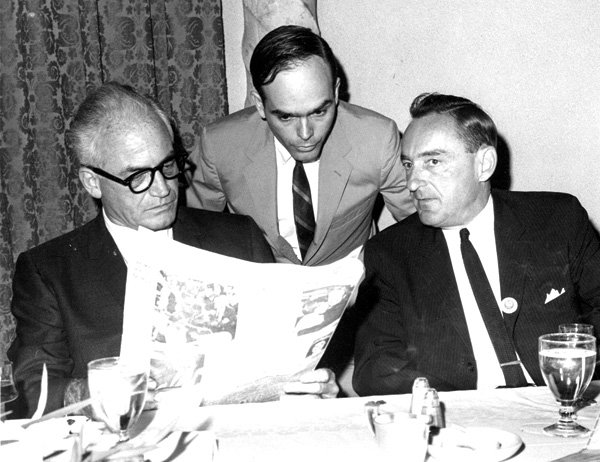 Lee Edwards (center) with 1964 GOP presidential candidate Barry Goldwater and running mate William E. Miller [Courtesy of ISI]