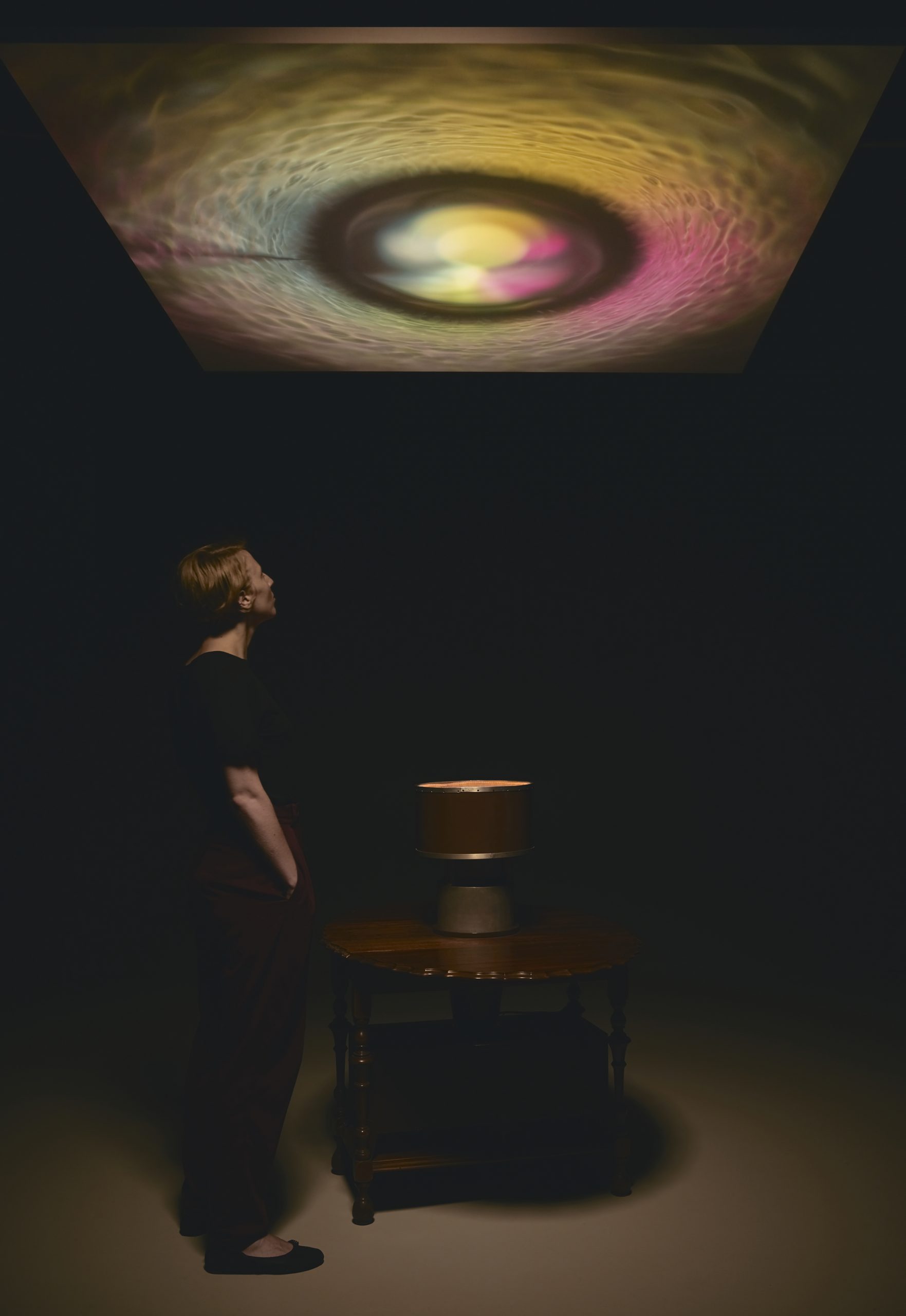 Every one of the Wilfred’s lumia has a fantastic-organic analogue. In his Elliptical Prelude and Chalice, a tabletop chalice-shaped clavilux which projects onto the museum ceiling twice every hour, we found the enormous eye of a benevolent giant staring down from another dimension. And were the rooms more heavily trafficked, we couldn’t have laid down on the museum benches and stared back until it turned off again.