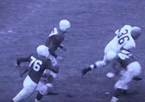 Former Cleveland Browns fullback Marion Motley, who lowered his shoulder and the boom on defenders decades before Cam Newton was even in diapers. Credit: NFL Films