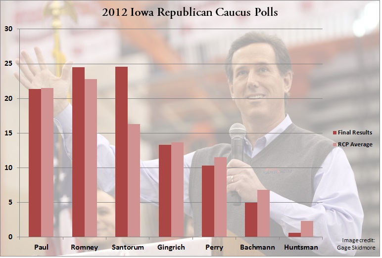 The three charts — two for the Republicans in 2008 and 2012, and one for the Democrats in 2008 — show that Santorum, the former Pennsylvania senator, pulled off the biggest Iowa rally in recent history. He performed 8.3 points better than his last polling average, when he trailed former Gov. Mitt Romney and former Rep. Ron Paul going into the caucus.