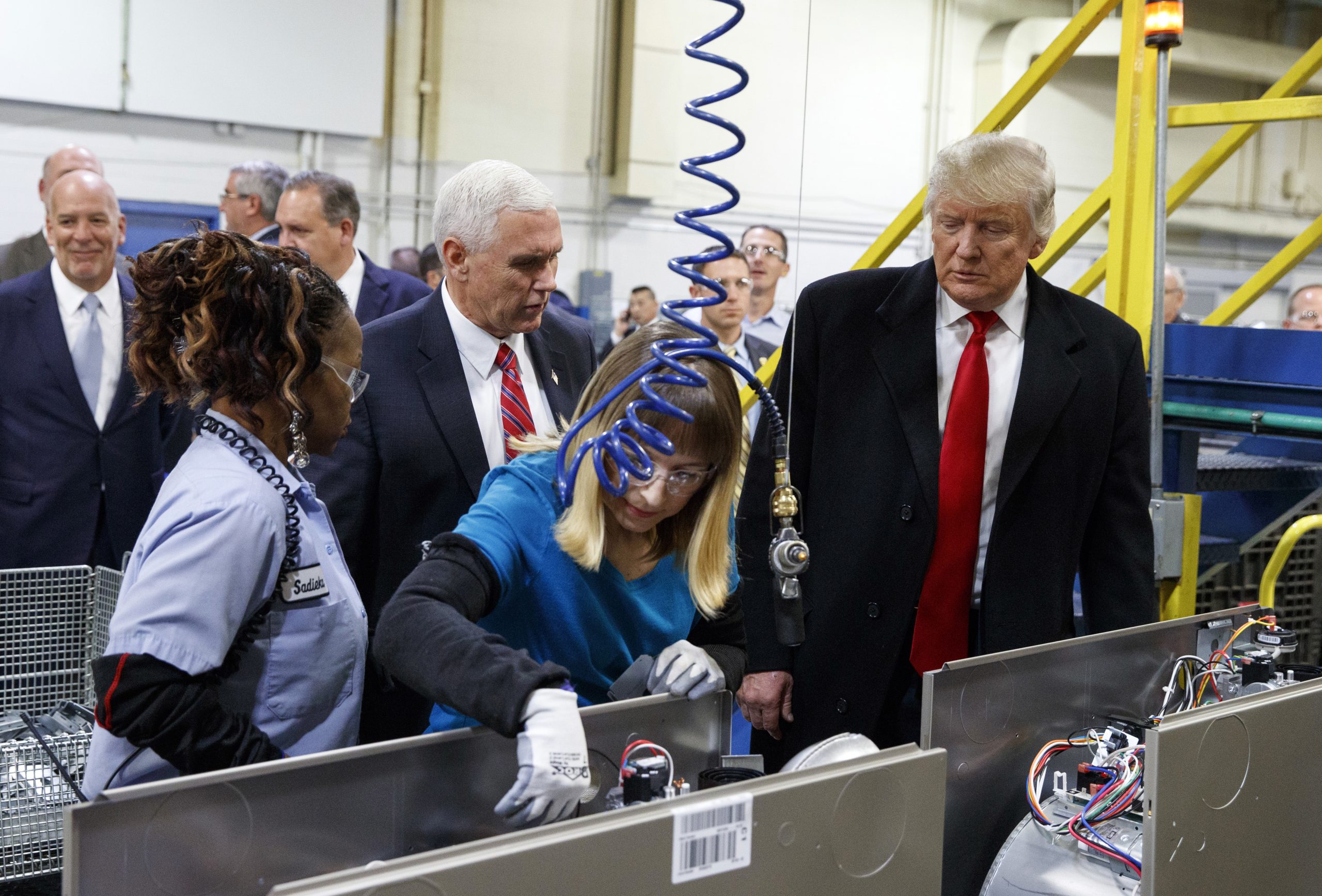 Holcomb spent some time with Gov. Mike Pence and President-elect Trump in Indianapolis at the Carrier plant. (AP Photo)