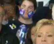 But that’s not the weirdest part. During her speech, somebody behind Clinton covered his face in Hillary stickers…