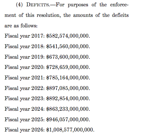 The reason for the rising debt has to do with why it was introduced: to set up the repeal of Obamacare. Republicans need to use the process of budget reconciliation to pass legislation repealing Obamacare in the Senate. Under that process, legislation called for under a budget resolution can be passed in the Senate with a simple majority vote, instead of the usual 60 votes needed to avoid a filibuster.