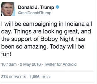 He and Knight have been campaigning across Indiana since the legendary Hoosier first announced his support last Wednesday. Knight also joined Trump on the cable news circuit last Friday for several interviews about his state’s upcoming nominating contest and the reason he decided to back the businessman.