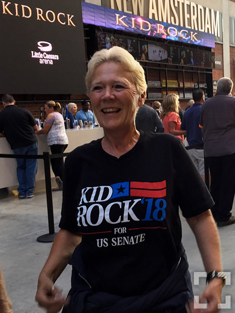 Kid Rock was born in Romeo in Macomb County, a northern suburb of Detroit. His brash candor appeals to Macomb’s largely white working class residents, who were out in full force at his concert. “Kid Rock says it like it is,” said Debbie, who was clutching two beers when I met her inside the arena’s beer garden. “He’s not politically correct, and honestly politicians should be like that.”“Kid Rock is real,” shouted another woman.A man in his 30s with tattoos covering much of his upper body saw a link between Kid Rock and Trump. Both have been successful in business and therefore didn’t need to cater to anyone in politics. “Kid Rock has enough money to say ‘fuck you,’” he said.I saw plenty of “Kid Rock for Senate 2018” T-shirts and other merchandise stamped with the profanity for which Kid Rock is famous. During one song, a giant inflatable middle finger rose up on the stage’s platform.