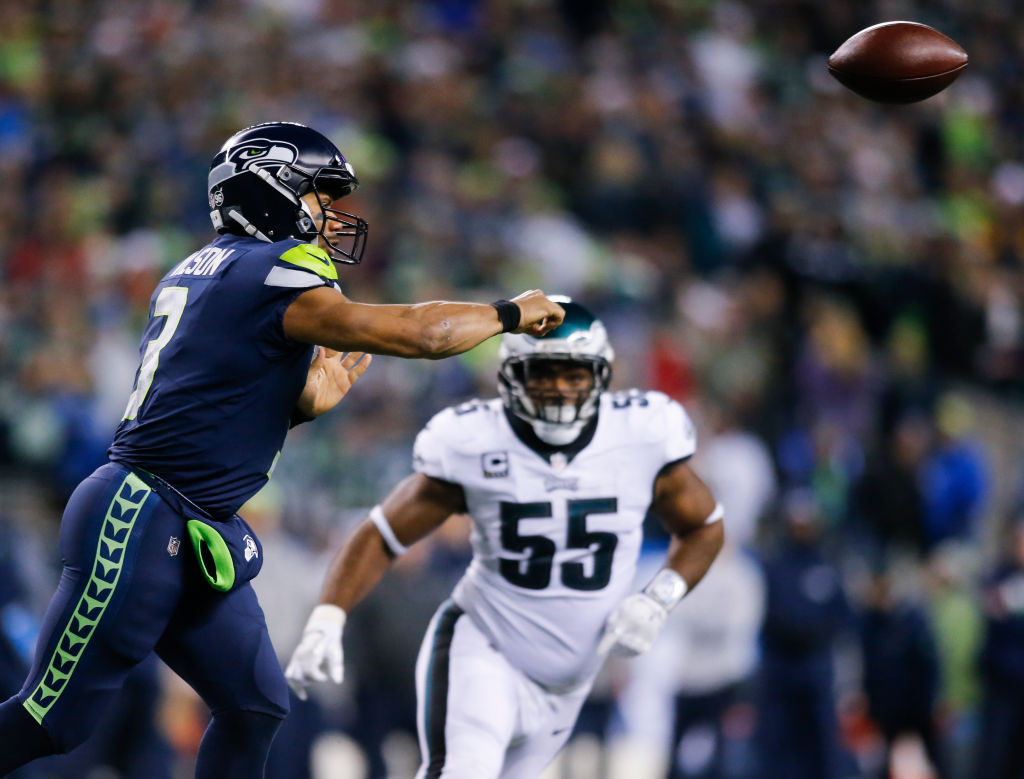 Quarterback Russell Wilson #3 of the Seattle Seahawks passes against the Philadelphia Eagles in the third quarter at CenturyLink Field on December 3, 2017 in Seattle, Washington. (Photo by Jonathan Ferrey/Getty Images)