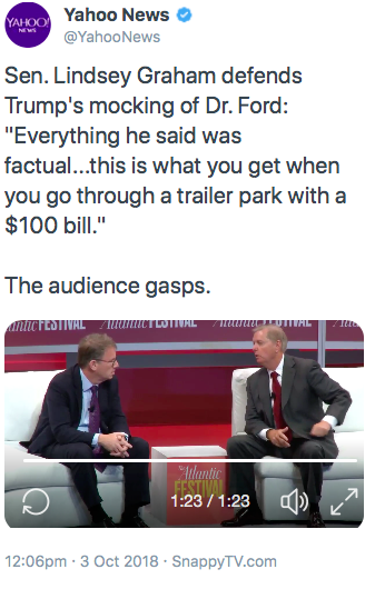 Lindsey Graham on Christine Blasey Ford: “This is what happens when you go through a trailer park with a $100 bill.”
