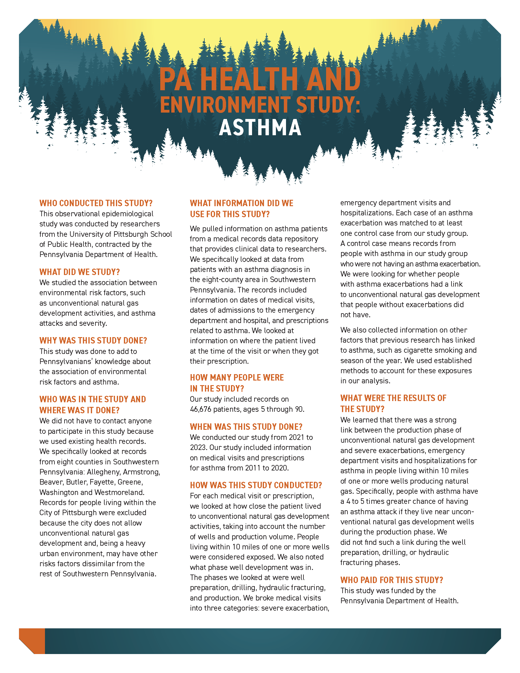 The results of adverse consequences were stronger for those with asthma, with the study finding those living near fracking wells having a four to five times greater chance of a severe asthma attack, including hospitalization, during the production phase of well operations. The risks of severe asthma consequences were lower for other phases during the hydraulic fracturing process.