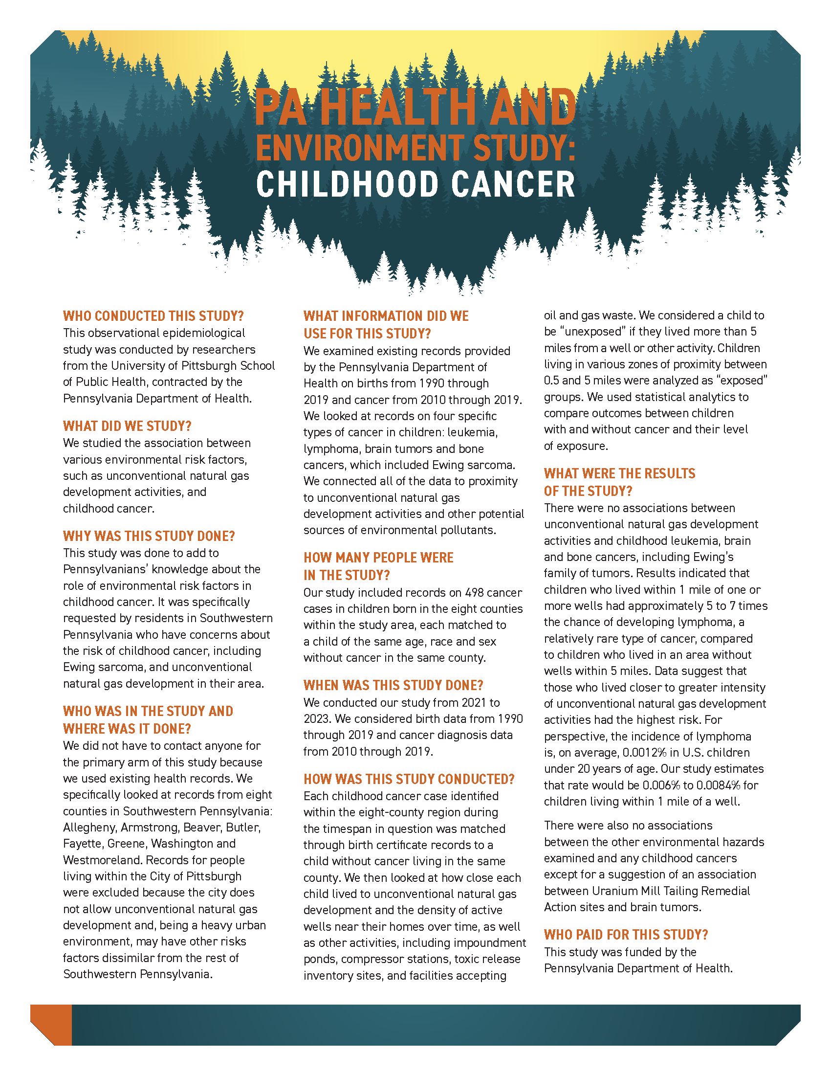 The Pennsylvania Department of Health has not yet issued a statement on the findings.