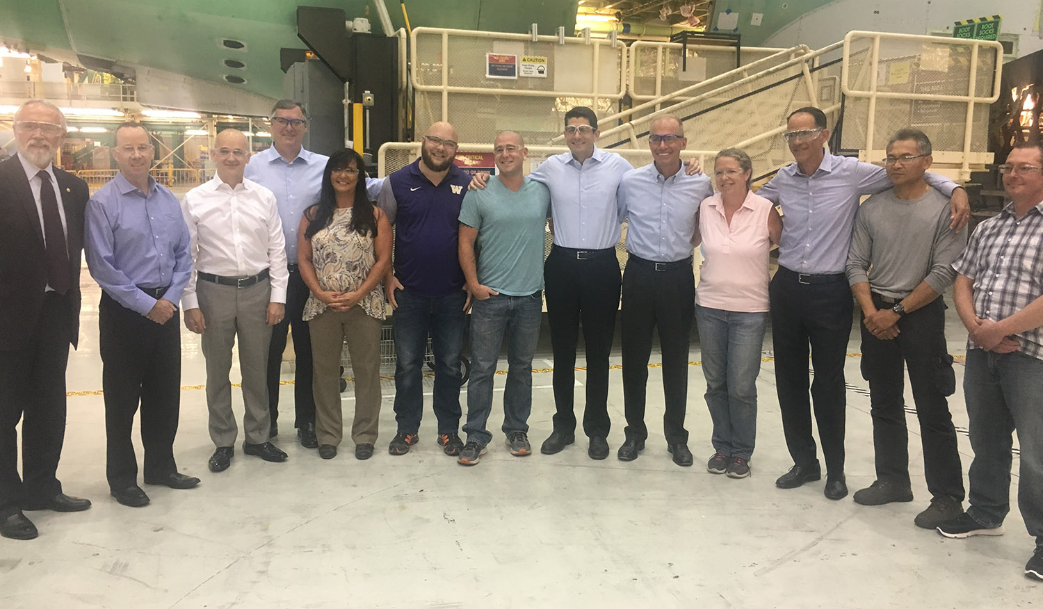 When we got there, another group of employees was waiting. For a brief moment, they stood awkwardly about 50 feet away while the Boeing execs and Ryan paused to talk.