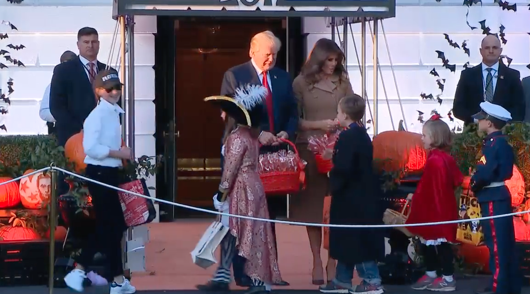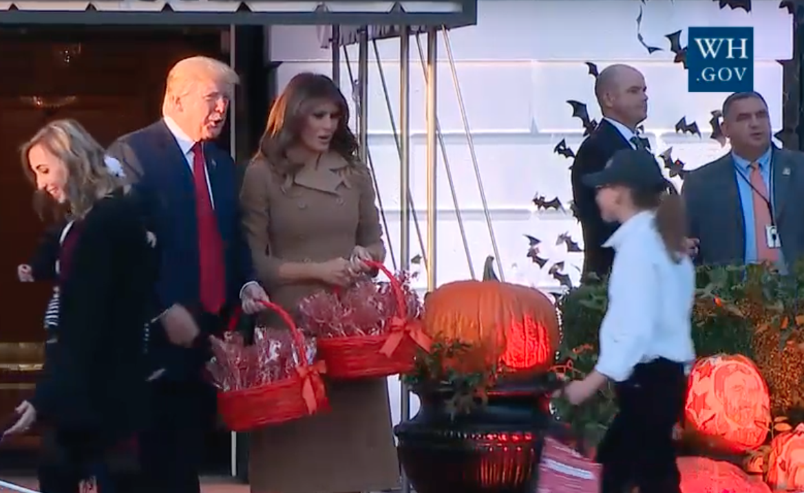 President Trump and first lady Melania Trump got into the Halloween holiday spirit Monday when they hosted a trick-or-treat event at the White House.