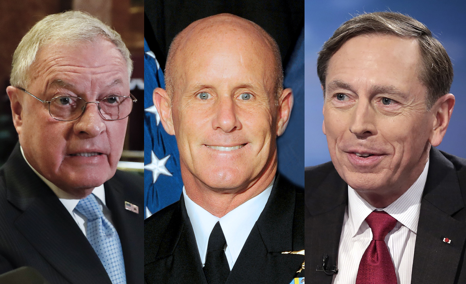 Retired Lt. Gen. Keith Kellogg, retired Vice Adm. Robert Harward and retired Gen. David Petraeus are contenders to replace former national security adviser Mike Flynn after he resigned Monday night. (AP Photos)