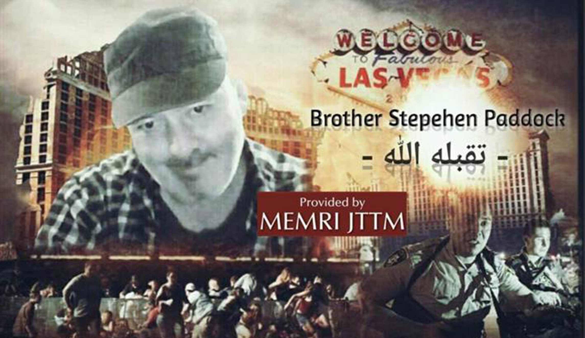 On the Telegram channel, an image of Paddock is posted with the caption: “O’ Lion of Tawhid [monotheism], May Allah Accept from you. You will be long remembered as the lion who avenged for his brothers,” according to the terrorist monitoring group.