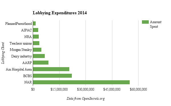 Vastly outpacing the NRA’s lobbying spending last year was the National Association of Realtors, a group that advocates for, among other things, lax lending policies that make it easier for people to buy homes. Many blamed such policies for the collapse of the housing market in 2008, leading to a deep economic recession.