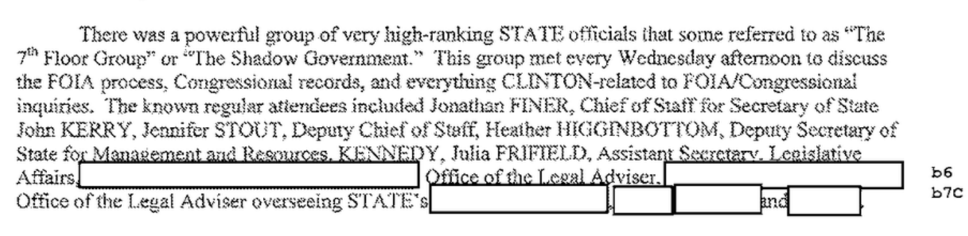 A group of high-ranking State Department officials, dubbed the “Shadow Government” by witnesses who spoke to the FBI, pushed to release all 30,000 of Clinton’s emails at the same time, in Jan. 2016, rather than over the course of several months starting in summer 2015.