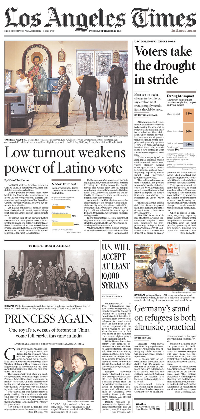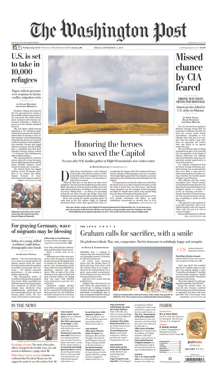 Here are the five American newspapers that commemorated the 14th anniversary of 9/11 on their front pages (courtesy the Newseum):
