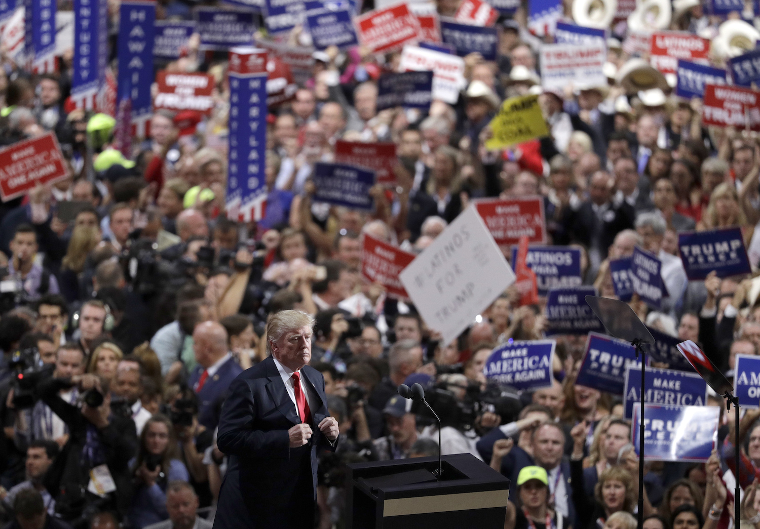“The most important difference between our plan and that of our opponents is that our plan will put America first,” Trump told the delegates, reiterating his central campaign argument. (AP Photo)