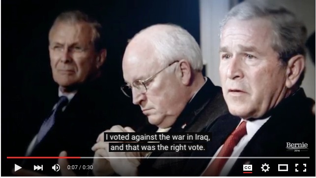 Bernie Sanders is subtly bringing up Dick Cheney and George W. Bush in his latest ad. The ad is an anti-Iraq spot, highlighting his opposition to the war from the get go.