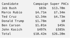 As covered so far, Cruz was very selective in which states he would compete in and therefore rigid in his path to the nomination. This caused his campaign to stockpile its funds to deploy in what it viewed as the most winnable contests on Super Tuesday.