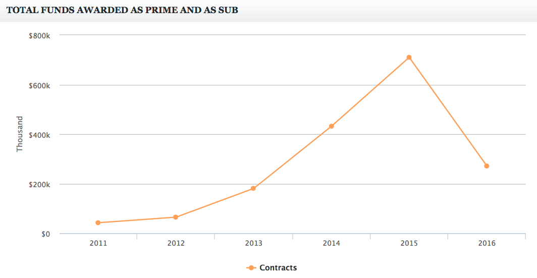The last complete fiscal year, 2015, eighteen departments or agencies signed 50 different agreements for a grand total of $710,044, a 64 percent increase over 2014. This fiscal year, 2016 (beginning in October 2015), the total so far is $271,000. The graph below illustrates the growing federal appetite for Politico’s services: