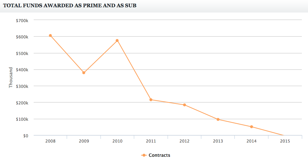 The New York Times shows a similar drop off, going from $97,000 in 2010 to zero in 2014, 2015 and 2016.