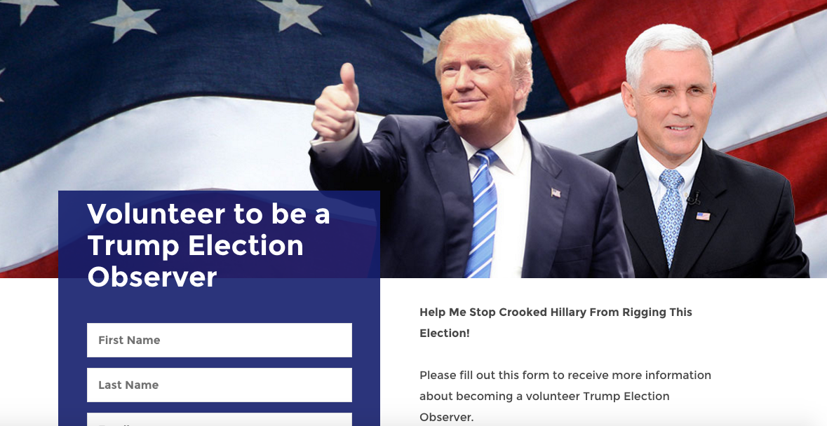 The new initiative, launched Friday night, prompts people to add in their contact information in a box reading: “Volunteer to be a Trump Election Observer.”