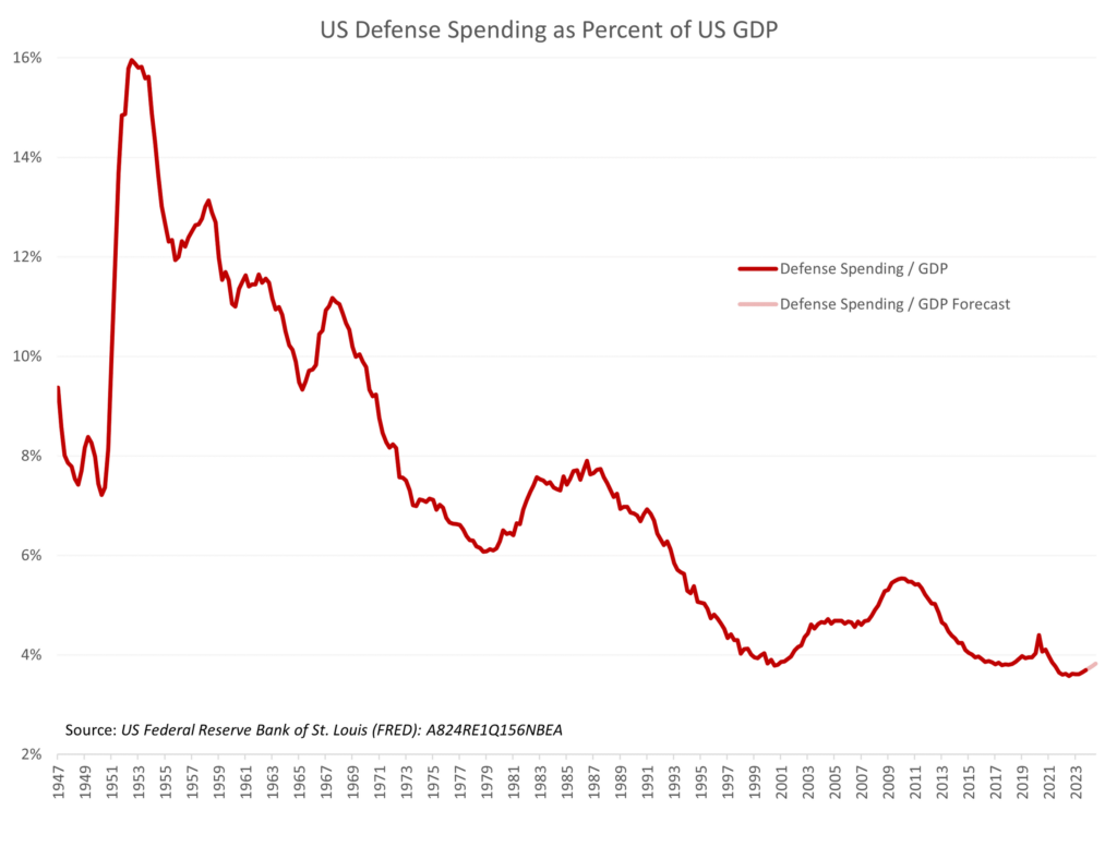 Defense spending as a percentage of GDP is at a low point. Graphic courtesy Princeton Policy Advisors.