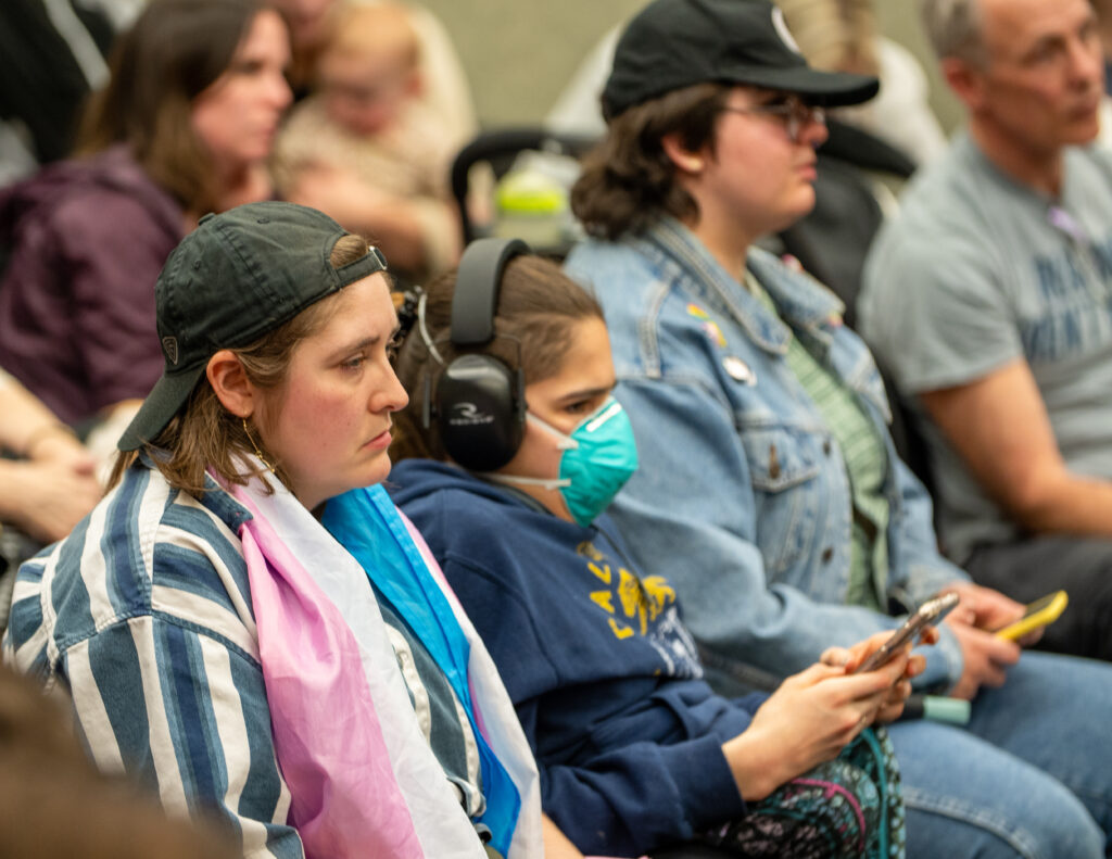 As they shared about their athletic career experiences, Gaines and Hamilton were met with transgender activists at the event. The activists, draped in transgender pride flags and themed clothing, made their presence known with random disturbances from the crowd.