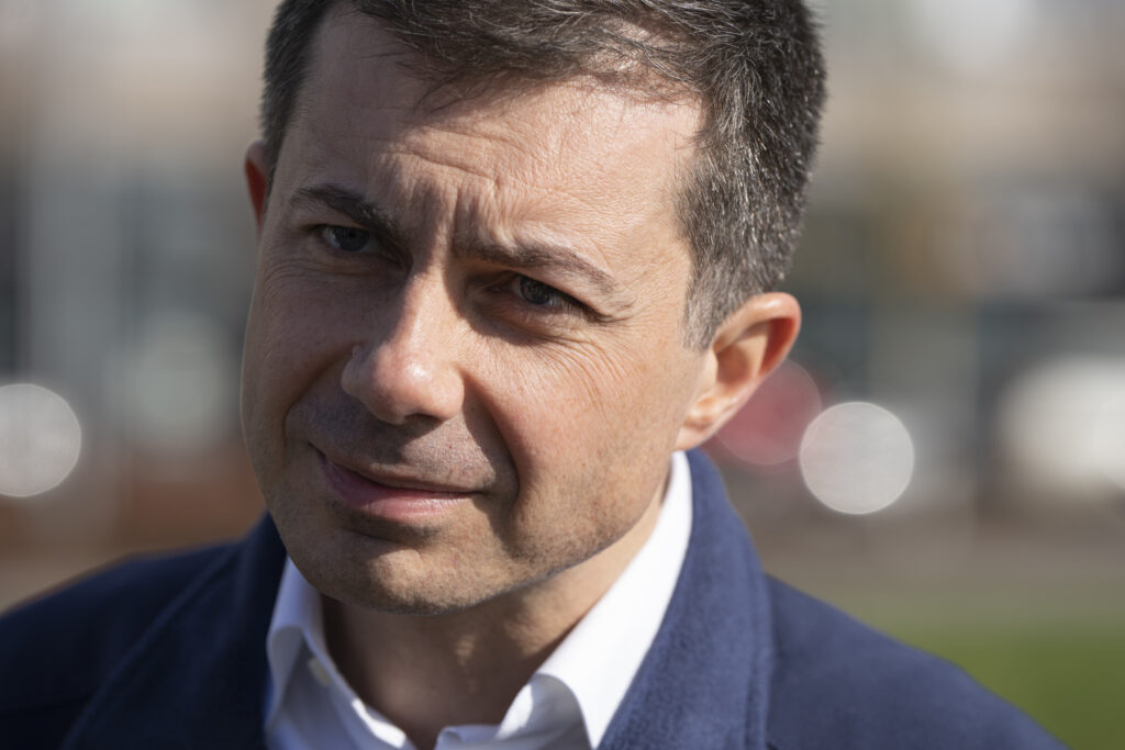 U.S. Transportation Secretary Pete Buttigieg speaks to members of the media in Vancouver, Wash., after touring the century-old Interstate 5 bridge that spans the Columbia River and connects Portland, Ore., with southwest Washington state on Tuesday, Feb. 13, 2024. (AP Photo/Jenny Kane)