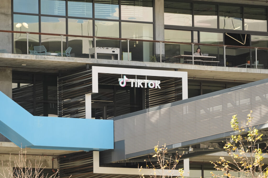 A TikTok sign hangs on their building in Culver City, Calif., on March 11, 2024. (AP Photo/Damian Dovarganes)