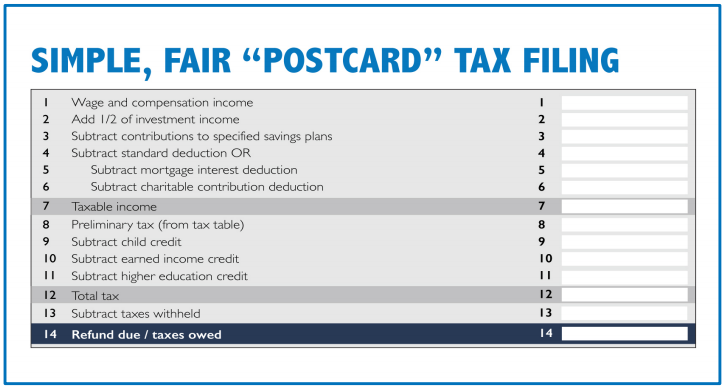 Filing taxes on a postcard is not a new promise. Steve Forbes, the publishing executive who ran for president as a Republican in 1996 and 2000, used the postcard as a campaign selling point, and others have followed suit.