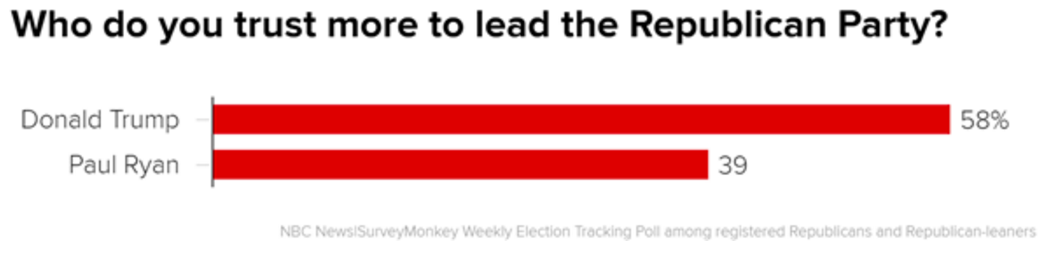 Fifty-eight percent trust the presumed Republican presidential nominee to lead the party over the Wisconsin congressman, according to a new NBC News/SurveyMonkey Weekly Tracking poll.