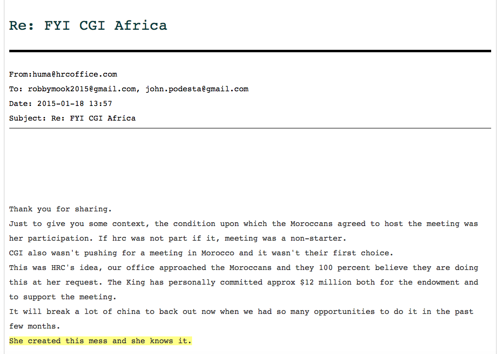 In January, Clinton’s campaign struggled on how to pull out of a Clinton Global Initiative event in Morocco amid controversy over the charity’s longstanding acceptance of foreign contributions. The king of Morocco had promised a $12 million donation that was contingent on Clinton’s pledged appearance at the event. She ultimately did not attend the meeting.