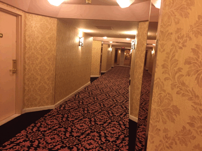 In the hotel, the story is the same. A pink decor greets you when you arrive on your floor. It might have looked hip back in 1990—but today it looks, well, like the walls were smeared with Pepto-Bismol…a quarter century ago.