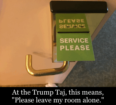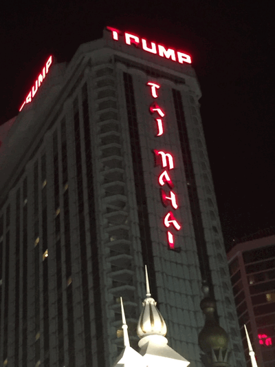 In celebration of my brother’s coming nuptials, I took him to Atlantic City to see Buddy Guy and Jeff Beck (who were great) as well as Huey Lewis and the News (also great). Though both shows were at the Borgata, rooms at the Trump Taj Mahal were about half of what the other major casinos were charging. Being a #NeverTrump dead-ender, curiosity got the better of me.