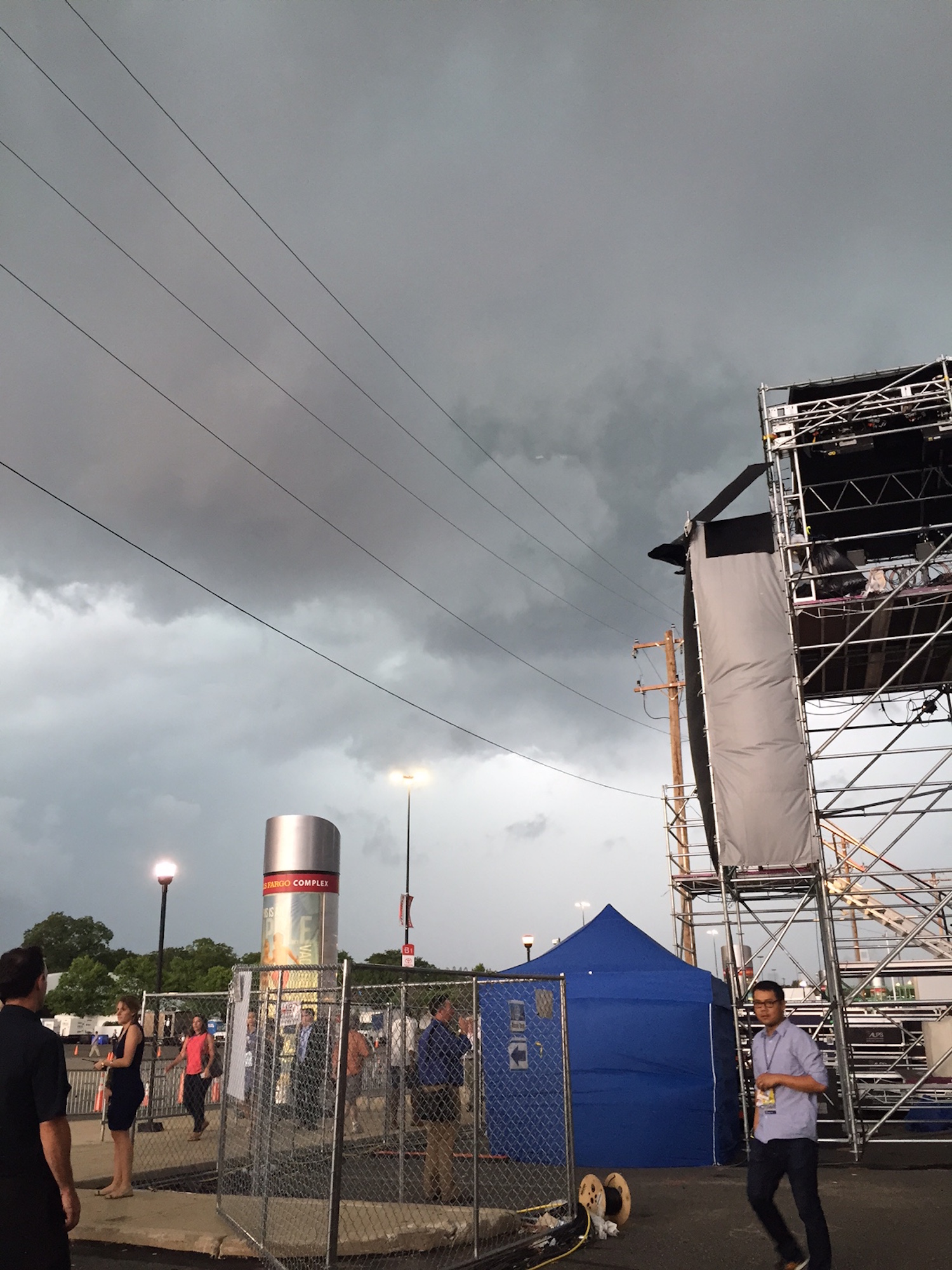 Dark clouds descend on DNC. Oh and a storm is coming. pic.twitter.com/RjEg1vF8TH
