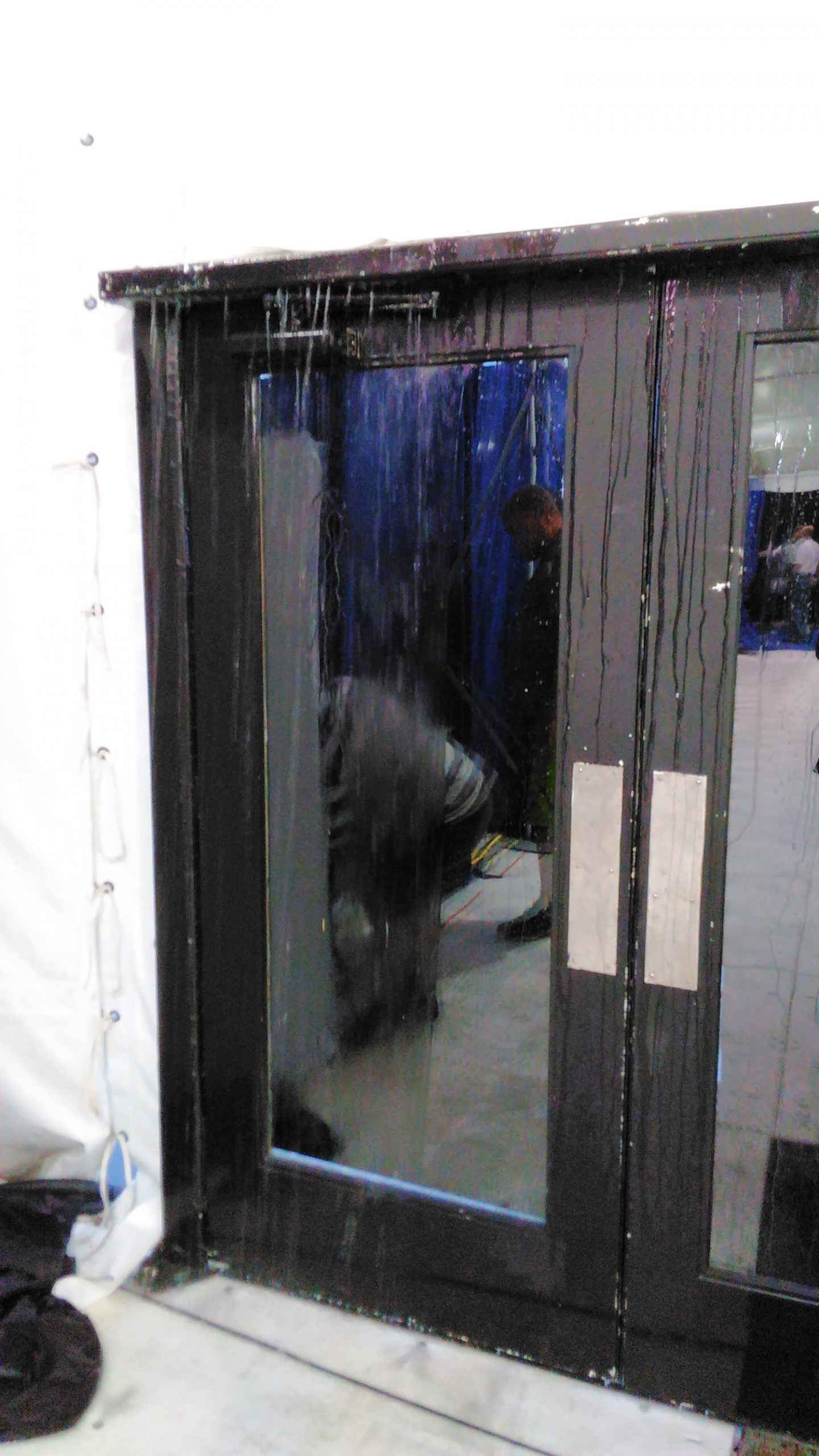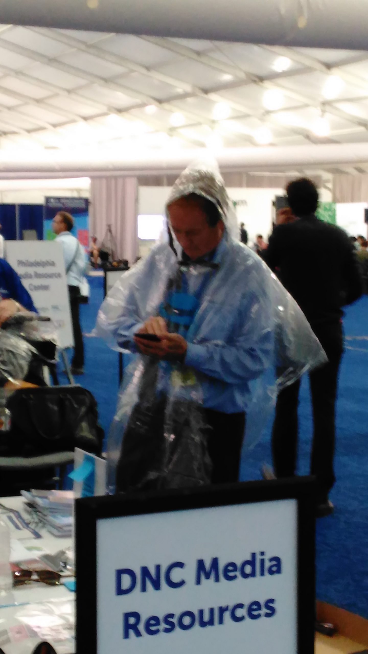 Media filing tent outside Wells Fargo Center starting to resemble big bouncy house as storm rolls through in Philly pic.twitter.com/hK6hu0XKOU— Bill Ruthhart (@BillRuthhart) July 25, 2016
