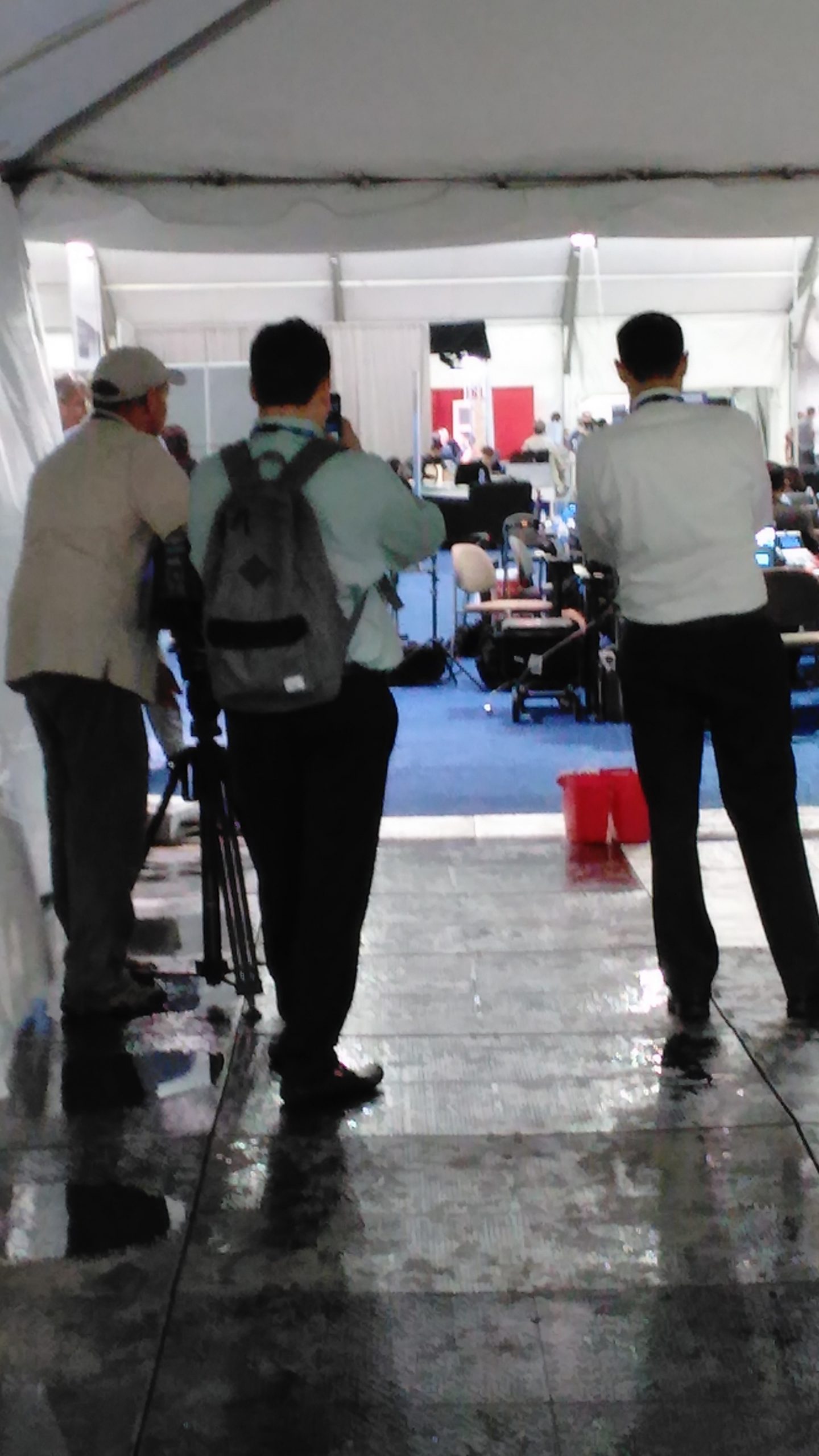 Some reporters took note, and abandoned the media tents. But many remained, and chose to wait out the storm, which eventually died down at around 8:30 p.m.