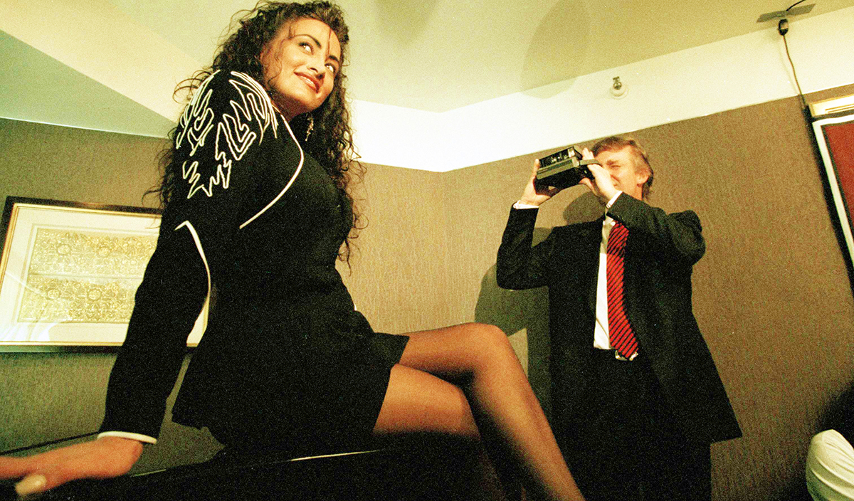 Donald Trump uses an instant camera to make a picture of Playmate hopeful Lisa Madison during a publicity session in New York, May 3, 1993, where hundreds of women are expected to audition over the next few days in hopes of becoming Playboy’s 40th anniversary Playmate. (AP Photo)