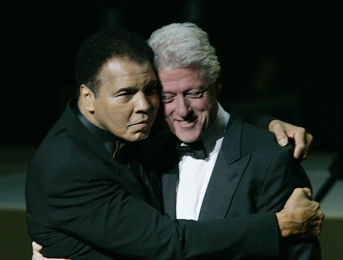 Muhammad Ali hugs former President Bill Clinton in 2005. (AP Photo)