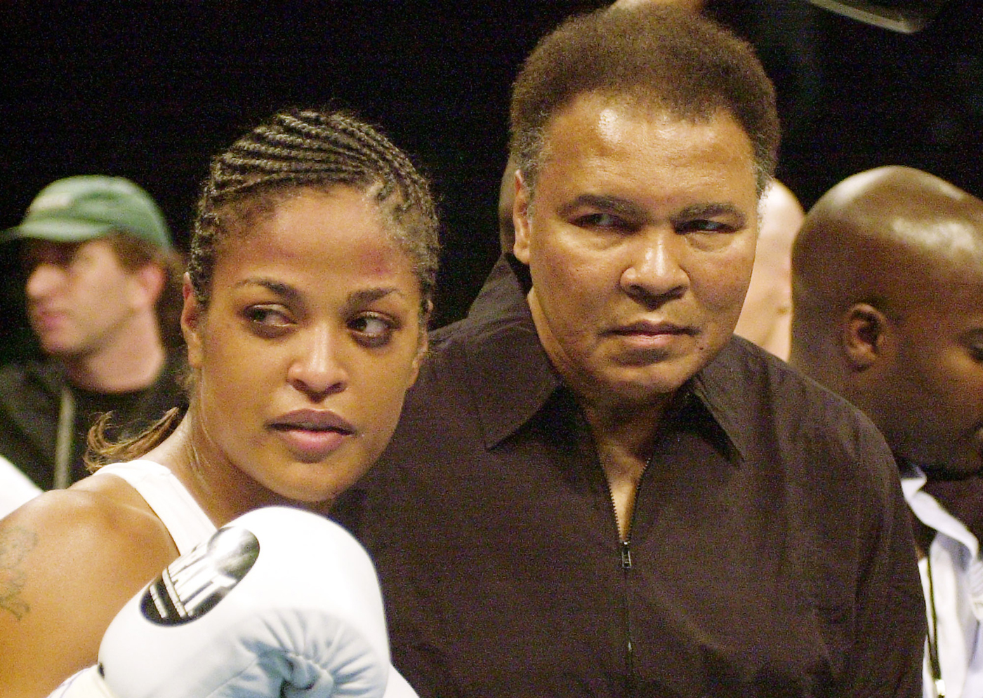 Laila Ali poses with her father former boxing great Muhammad Ali after she beat Suzy Taylor to win the IBA Super Middleweight title in 2002. (AP Photo/Joe Cavaretta)
