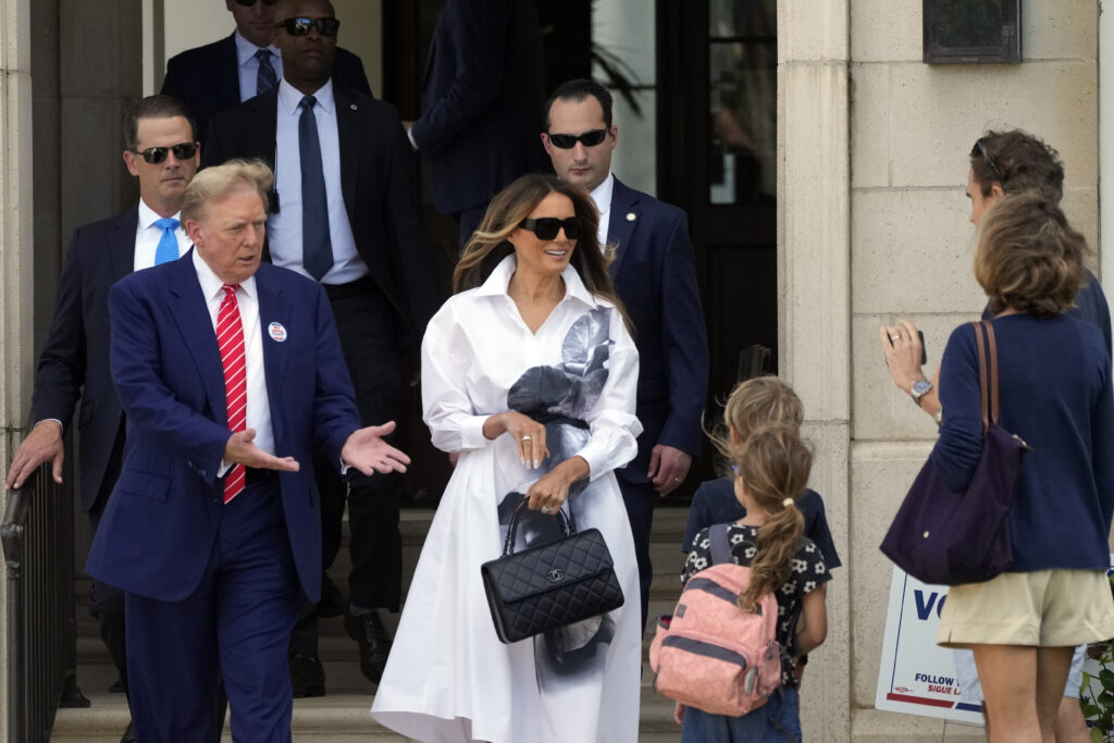 Republican presidential candidate former President Donald Trump and former first lady Melania Trump leave after voting in the Florida primary election in Palm Beach, Florida, Tuesday, March 19, 2024. (AP Photo/Wilfredo Lee)