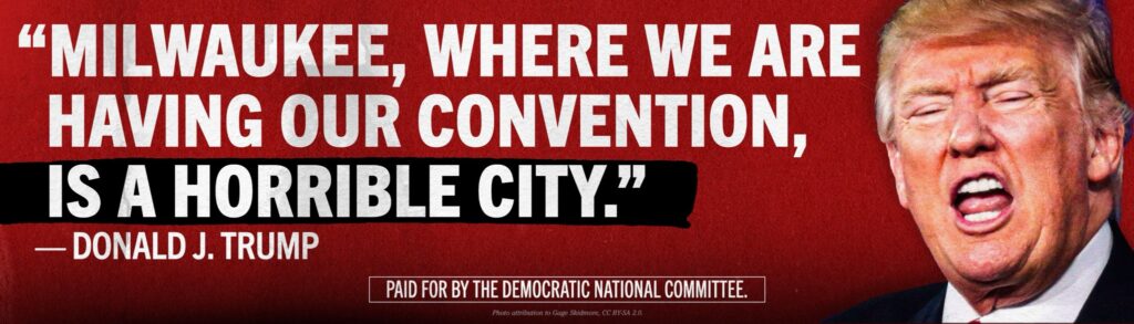 At least one billboard displayed his alleged comments: “Milwaukee, where we are having our convention, is a horrible city.”