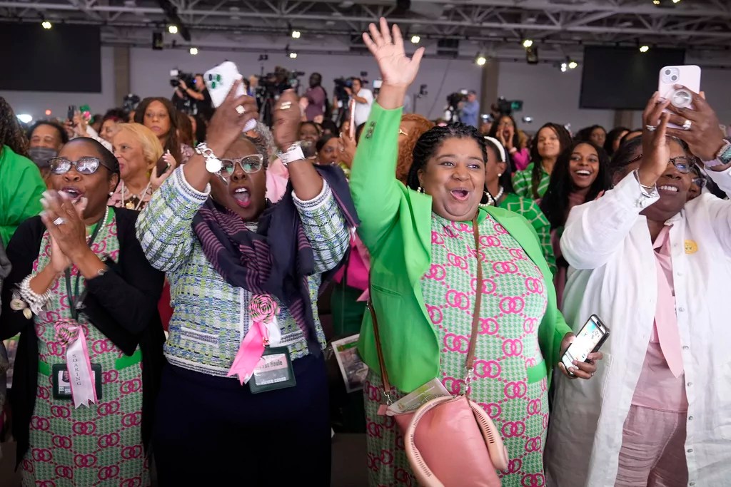 Speaking at the annual convention of the historically black sorority Zeta Phi Beta, the new Democratic candidate was met with enthusiasm and cheers. Harris is a member of another historically black sorority, Alpha Kappa Alpha.