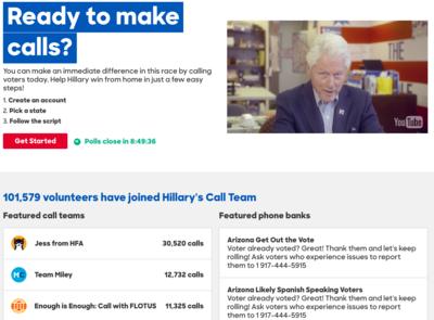 It directs volunteers to a registration site that includes a video from former President Bill Clinton urging action.