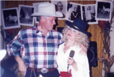 Hillary Rodham Clinton, who once insulted country star Tammy Wynette in defending her husband against adultery charges, has released a photo of her dressed as Dolly Parton in a birthday fundraiser for her hubby, who turns 70.