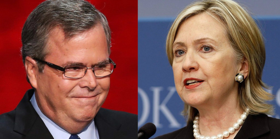 Hillary Clinton still leads Jeb Bush in a new national online poll. AP Photos